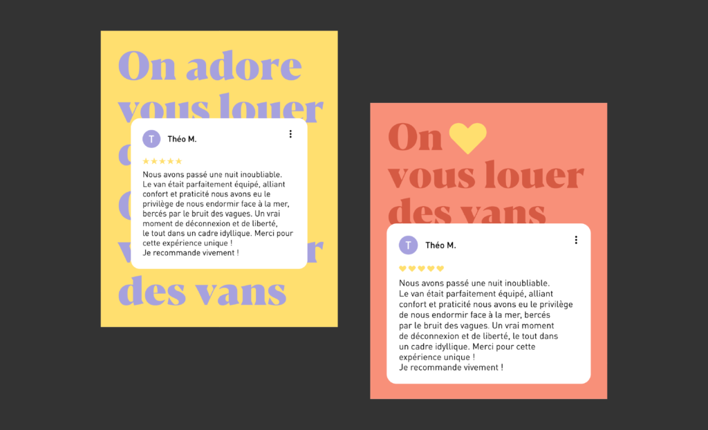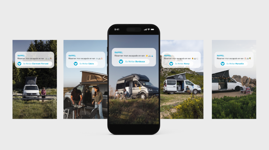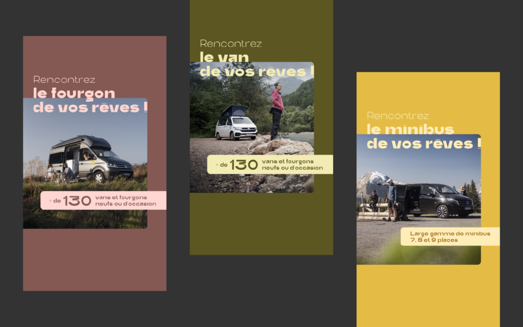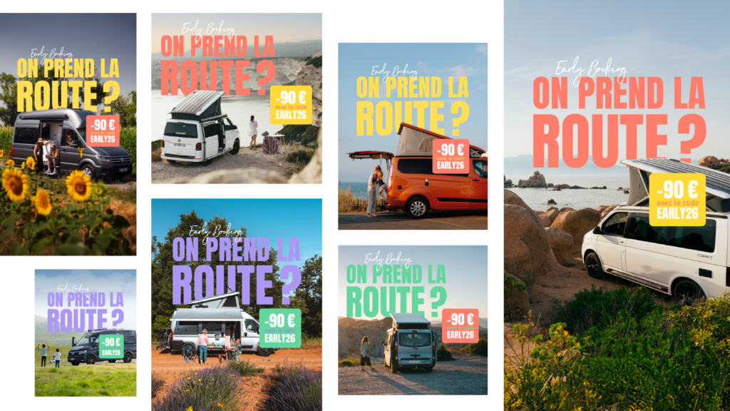 Accompagnement et création de campagnes webmarketing et de posts réseaux pour WeVan depuis 2025 en suivant les temps forts de ventes et de locations de vans et fourgons aménagés.